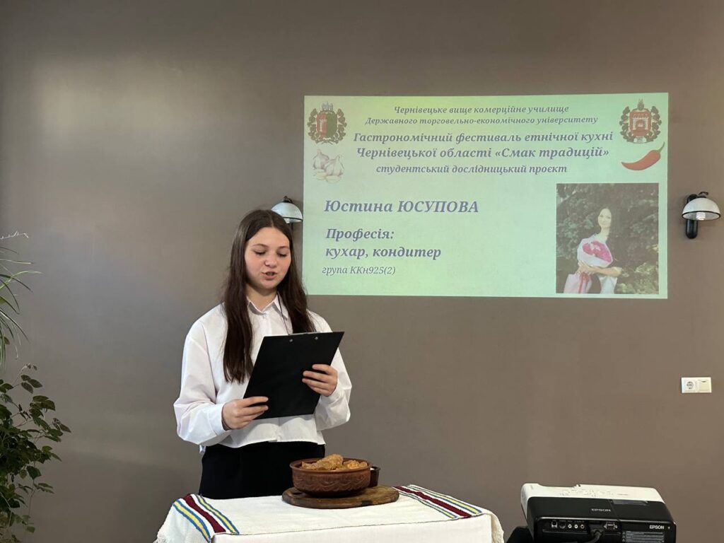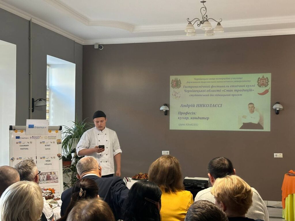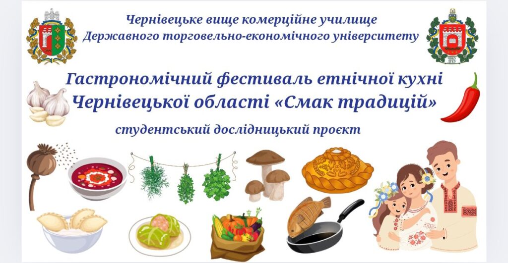 У Чернівецькому вищому комерційному училищі ДТЕУ відбувся Гастрономічний фестиваль етнічної кухні Чернівецької області “Смак Традицій”, який довів, що навіть звичайне приготування страви можна перетворити у справжній дослідницький проєкт. Майбутні кухарі перевтілились у дипломатів і представляли смачну гастрономічну етнічну спадщину нашого краю.
