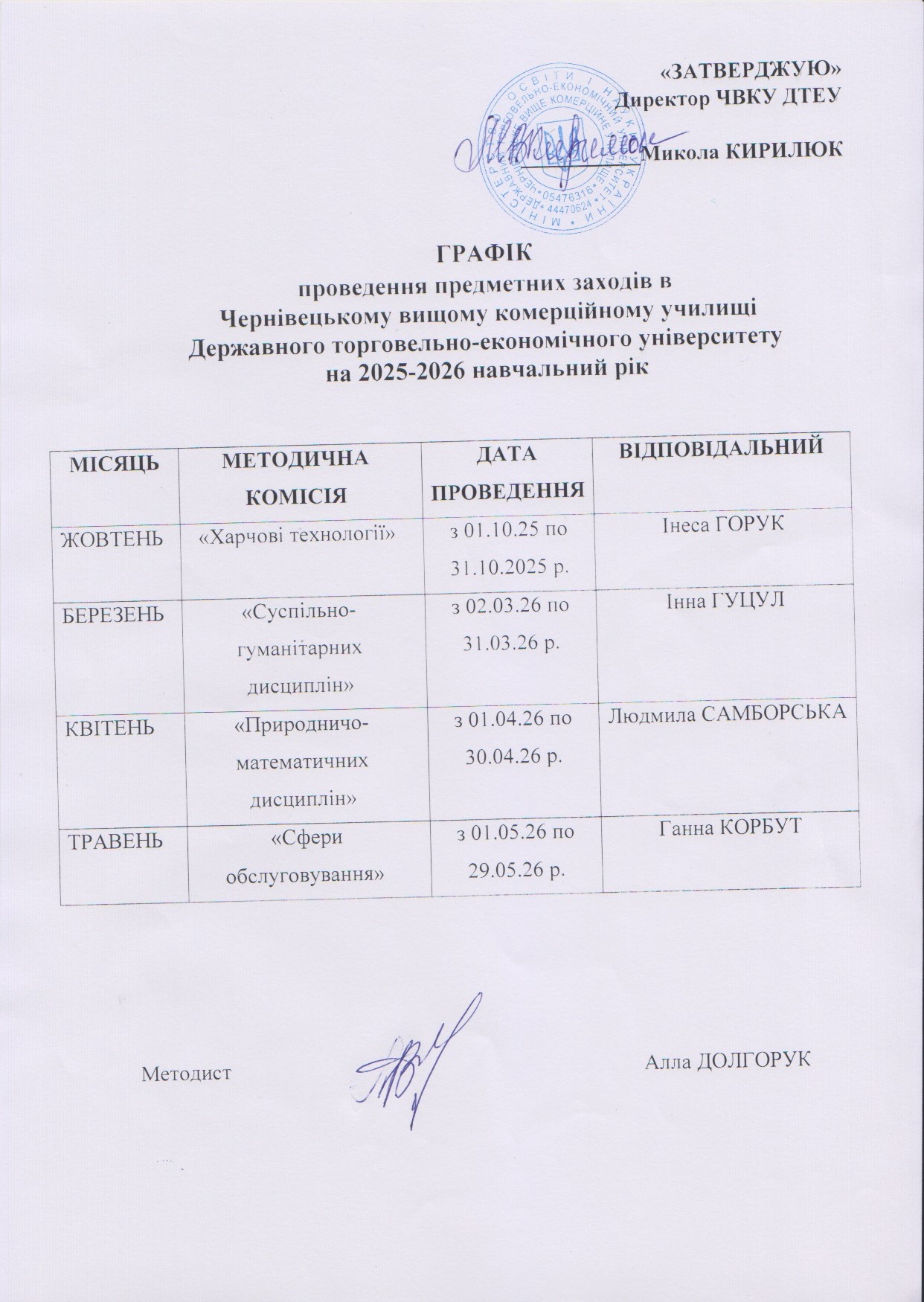 - Графік проведення предметних тижнів на 2025-2026 н.р.