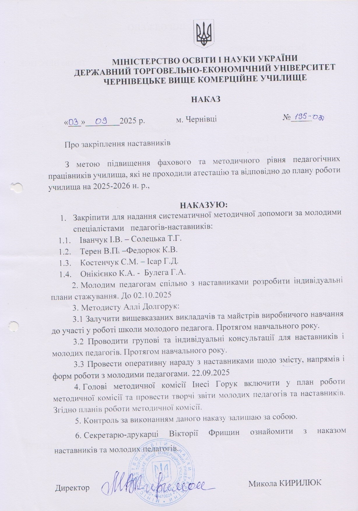 Про закріплення наставників у 2025-2026 н.р. /переглянути…/