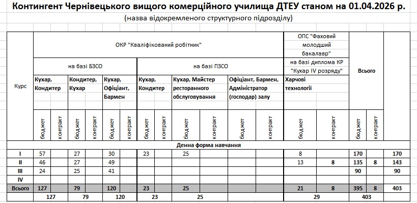 Фактична кількість осіб, які навчаються в закладі освіти (станом на 01.04.2026) /переглянути…/