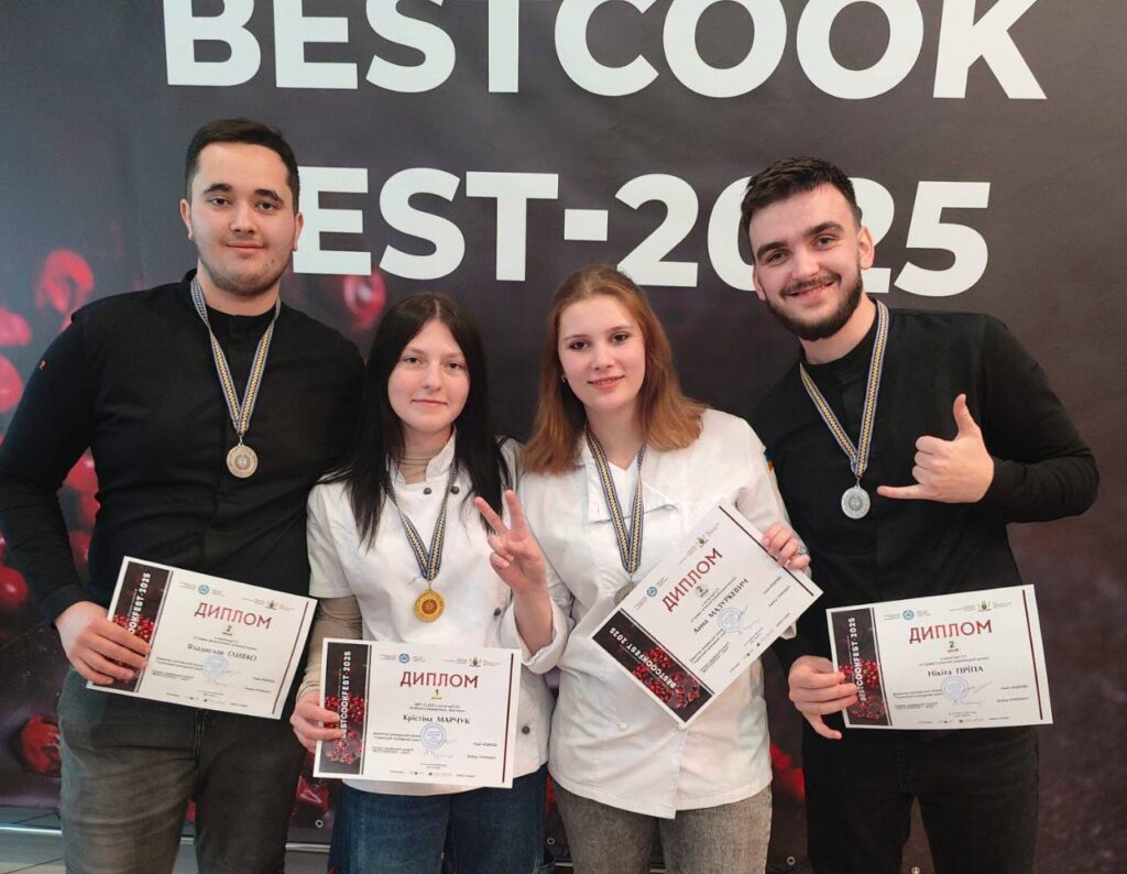Четверо талановитих студентів Чернівецького вищого комерційного училища ДТЕУ Нікіта Пріпа, Анна Мазуркевич, Владислав Гливко, Крістіна Марчук взяли участь у VIII Міжнародному конкурсі ресторанних технологій “BESTCOOKFEST-2025” у Києві. Майбутні майстри смаку в різних конкурсних номінацій довели, що креативність і наполеглива праця завжди дають результат.